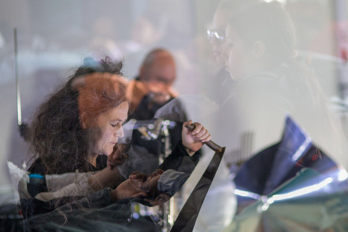 Avec Mireille Broilliard (scie musicale, clarinette basse, xaphoon), Francesco Russo (christal Baschet, térémine et clavier), et Thierry Humbert (Saxophones, piano à pouce, clarinette basse et flûte bansuri) / Régie : Maryline Jacques